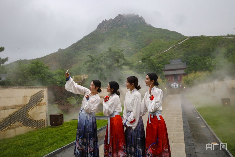 参观者着古装在封龙书院拍照(央广网记者王伟倩摄)