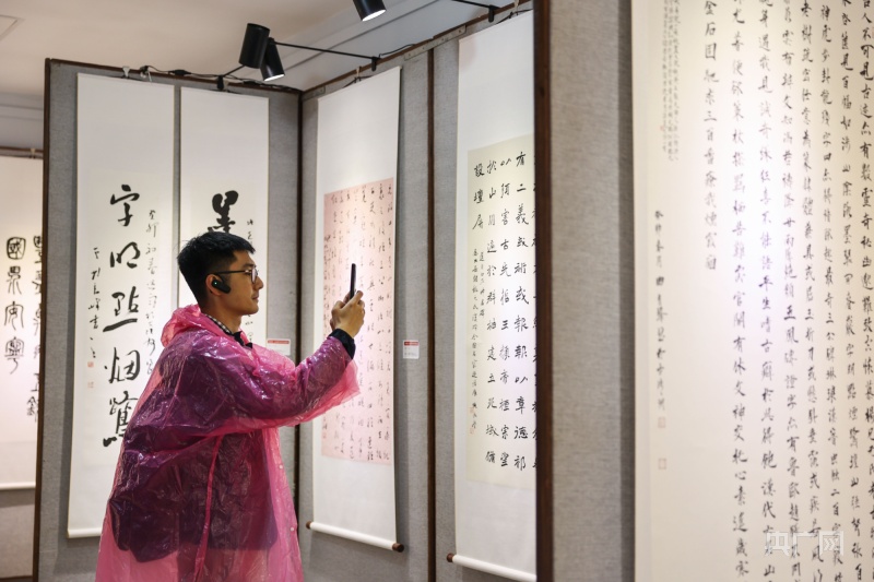 参观者在封龙书院内观赏书法名家佳作(央广网记者王伟倩摄)