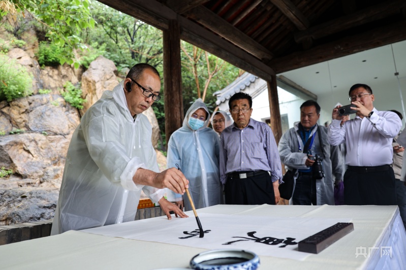 书法名家在现场即兴挥毫(央广网记者王伟倩摄)