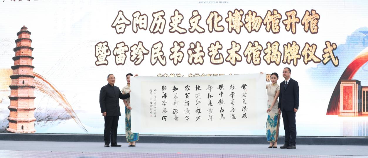 在雷珍民书法艺术馆揭牌活动中,雷珍民向合阳县人民政府捐赠个人艺术作品22幅,合阳县人民政府副县长井赵斌接受捐赠,中共合阳县委书记邓宽社致辞并为雷珍民先生颁发收藏证书。陕西省政协副主席刘宽忍、中共陕西省委宣传部常务副部长鲍永能出席活动并讲话。省市相关领导共同按下启动键,为合阳历史文化博物馆开馆暨雷珍民书法艺术馆开馆。随后,领导嘉宾移步合阳历史文化博物馆正门前,共同为合阳县全域旅游服务中心、合阳历史文化博物馆、雷珍民书法艺术馆揭牌。