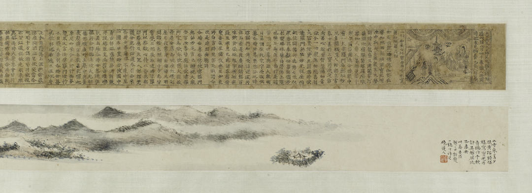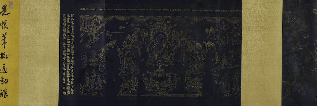 《大藏经》之外的单刻佛经及其注疏,流传更为广泛,今人已经无法确切统计其数量。其版式亦无定制,而刊刻机构涉及官府、书坊、私人及寺院。释不空译《一切如来心秘密全身舍利宝箧印陀罗尼经》一卷,又称《宝箧印经》。此经由吴越国王钱俶刻印,供养与雷峰塔砖之中,以做功德,因而俗称《雷锋塔经》。现知此经有后周显德三年(956)刻本、北宋乾德三年(965)刻本和北宋开宝八年(975)刻本三种。吴越国虽奉宋正朔,但纳土于太平兴国三年(978),因而此本又往往被视作五代刻本。上海博物馆藏北宋开宝八年(975)刻本数部【图11】,刀法成熟,但字体略显朴拙,扉画线条不够流畅。其中三部裱为卷轴装,卷前配陈曾寿画,又有数位名家题跋,为之增色。宋临安王念三郎家刻本《金刚般若波罗蜜经》【图12】,亦为鸠摩罗什译本。上海博物馆所藏本为傅增湘旧藏,傅氏《藏园群书经眼录》著录。此虽名“家刻”,而从牌记“行在棚前南街西经坊王念三郎家志心刊印”可知,实为书坊刻本而非私人刻本。傅氏题跋说此本“实属稀见”,其“字体劲整,图亦古雅,至可宝贵”,因而不能“以寻常宋本视之”,揭示了它的版本价值。