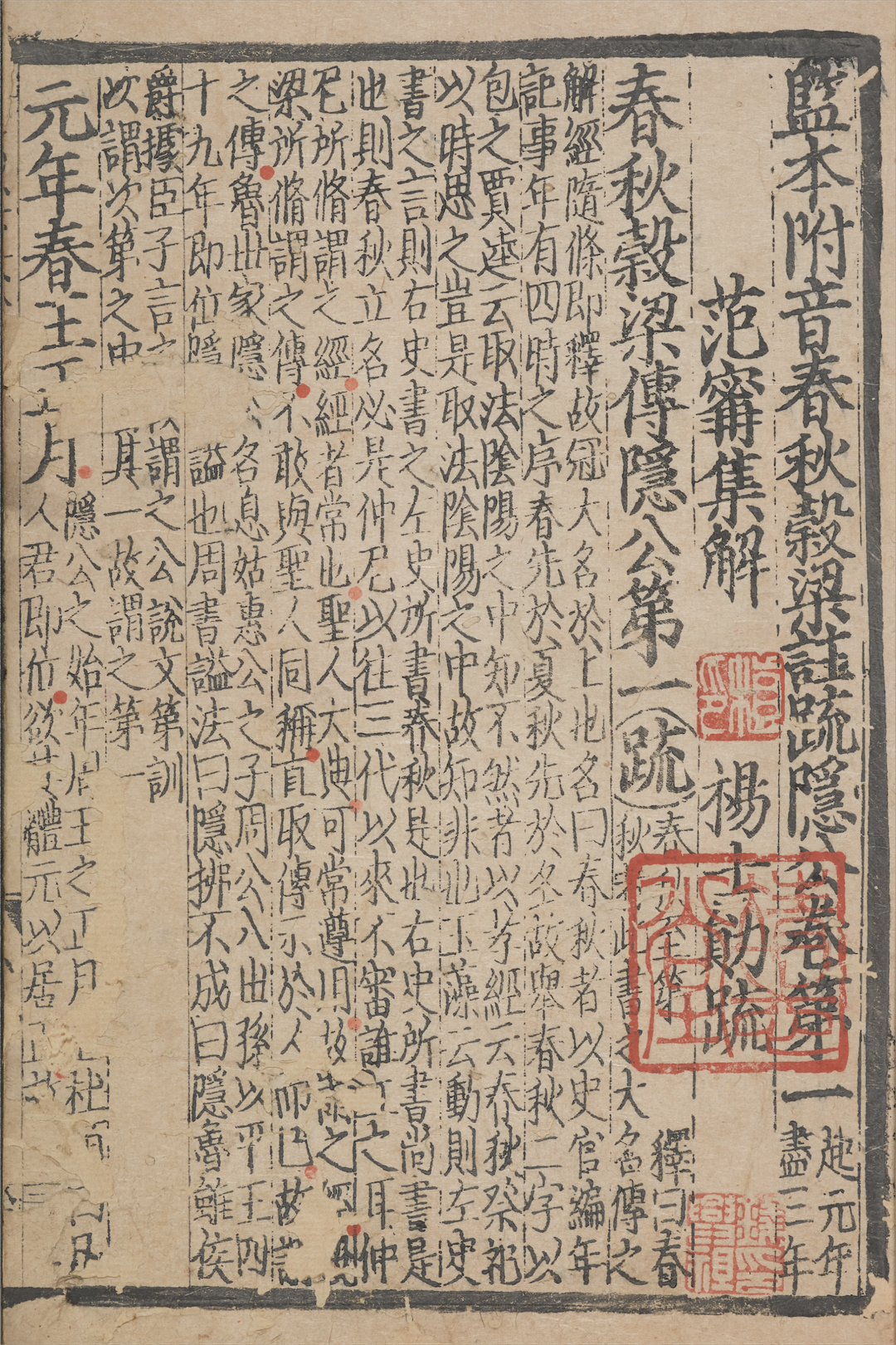 图1元刻明修本《监本附音春秋谷梁注疏》二十卷