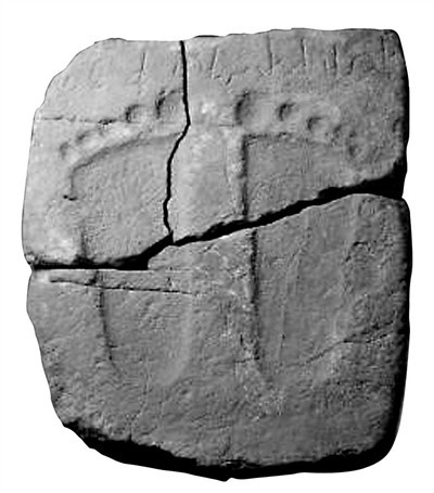 今天的学界倾向以民众用的口语和犍陀罗语及其文字佉卢文本作为重要研究资料,因而更看重佛教以传入中国后(约2世纪至6世纪)源自犍陀罗语的汉译佛典,现存的11至17世纪梵文本不再绝对。本次展出的一件来自巴基斯坦西北部斯瓦特地区的佛足石,带有佛陀初次讲法的“初转法轮”图样,下缘用犍陀罗的佉卢文题刻“佛陀·释迦牟尼之足印”,足见佛教在早期对佉卢文的倚重。
