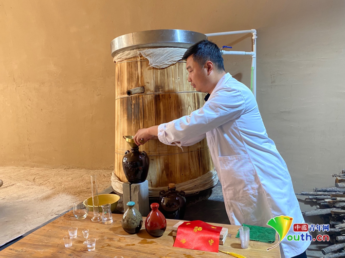 白宝山正在展示传统酿酒工艺。张玘云摄
