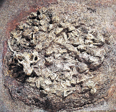 一窝鹦鹉嘴龙化石。