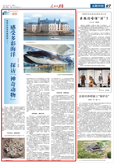 “我馆拥有海兽标本20余种,种类和数量在国内自然博物馆中名列前茅。”刘勤学介绍,大型海洋哺乳动物标本是大连自然博物馆的突出特色之一,大型鲸类标本陈列在国内居首,重点标本为北太平洋露脊鲸、长须鲸、灰鲸、抹香鲸、虎鲸、白鱀豚等。