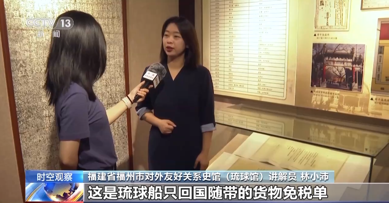 福建省福州市对外友好关系史馆(琉球馆)讲解员 林小沛:这是琉球船只回国随带的货物免税单,从中可以窥见中国优待远人,以示朝廷怀柔之至。明清时期琉球使团来华达884次之多,主要以朝贡贸易为主,也是从朝贡贸易方面体现两国的友好关系。