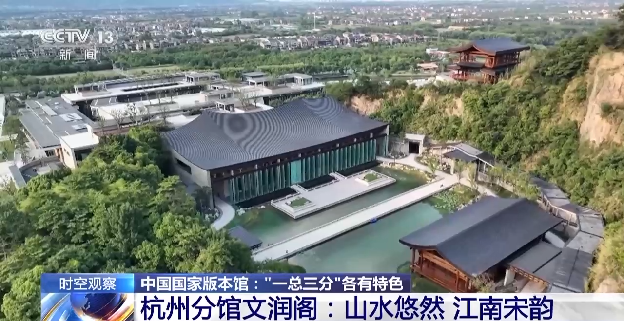 杭州分馆“文润阁”坐落于浙江杭州良渚,建筑设计围绕“宋代园林神韵的当代藏书建筑”展开。站在文润阁的屋顶上,就能眺望不远处的良渚古城遗址公园。杭州分馆是中央总馆的异地灾备库、江南特色版本库,及华东地区版本资源集聚中心。清乾隆年间抄制的《四库全书》曾分七馆而藏,其中一部就珍藏在杭州孤山南麓的文澜阁中。如今,文润阁接过历史的重担,肩负起了江南版本的保藏使命。