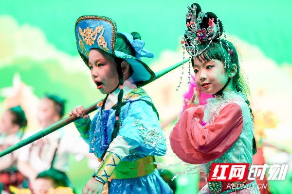 开幕式在一场大气磅礴的表演中拉开帷幕。湘剧高腔与富有节奏感的青春说唱表达悠悠华夏故事,湘剧国家级代表性传承人、“文华奖”“梅花奖”双奖得主曹汝龙与青年音乐人游金跨界搭档一曲《华夏》吟唱出中华历史的绵长画卷。长沙弹词市级代表性传承人王志敏、长沙快板传承人胡聪俊联袂合作曲艺说唱《星城文旅推荐官》,用长沙弹词与长沙快板展现星城长沙的文旅网红地标;孩子们带来的少儿戏剧表演《娃娃新唱花鼓戏》秀出非遗新风采,传递着少儿非遗梦……舞台上,老中青幼传承人,以歌道情,让经典咏流传。