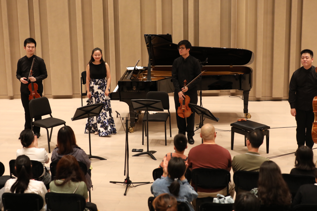 黄秋宁任教于上海音乐学院,和她同台的堂皇四重奏,是上海音乐学院在读研究生。