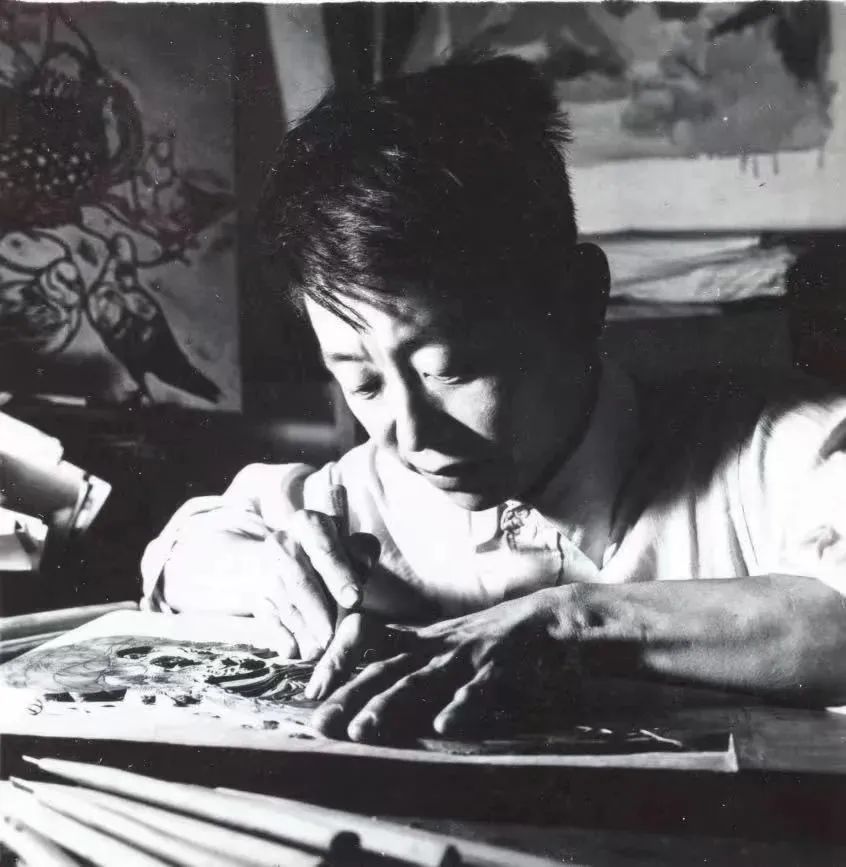 1962年黄永玉在校尉营美院宿舍刻花卉
