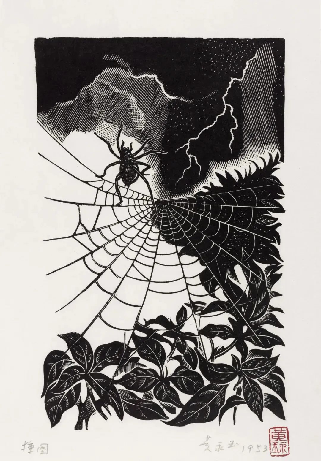 大风雨和蜘蛛25.5×16cm1953-1954年冯雪峰《寓言》插图