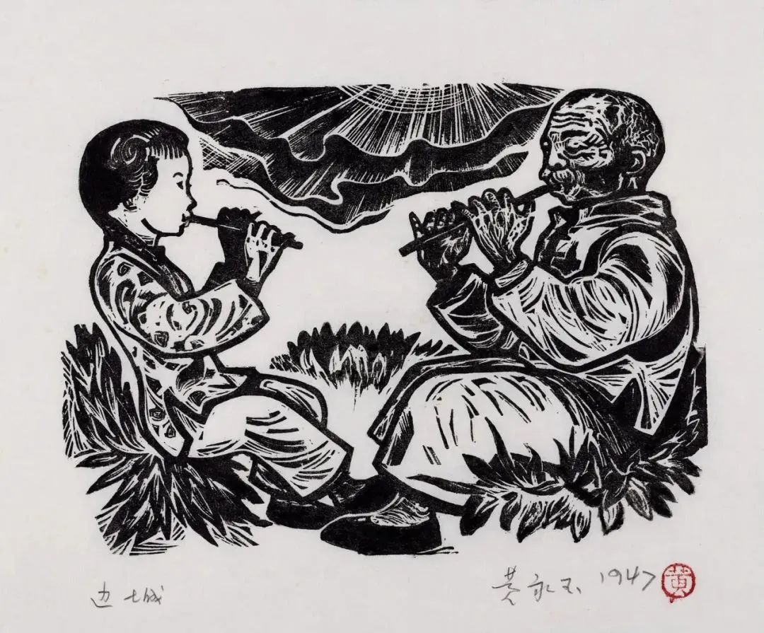 翠翠和爷爷13.5×18.5cm1947年沈从文小说《边城》插图