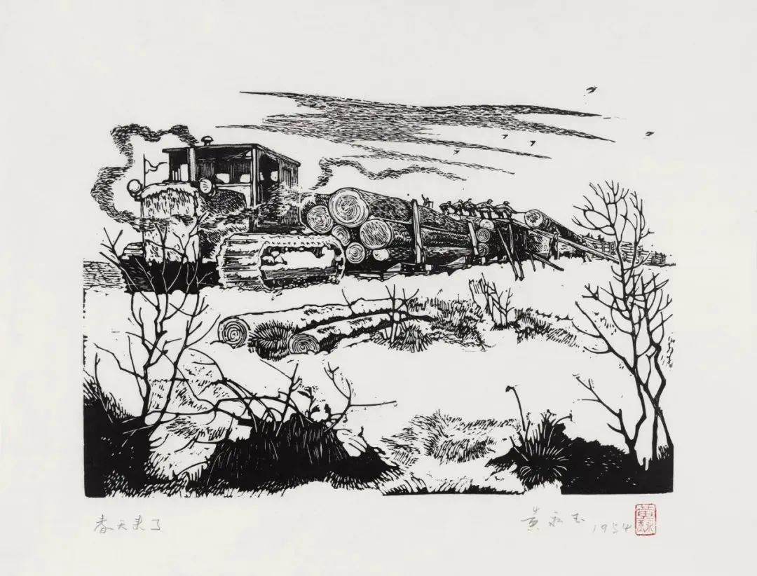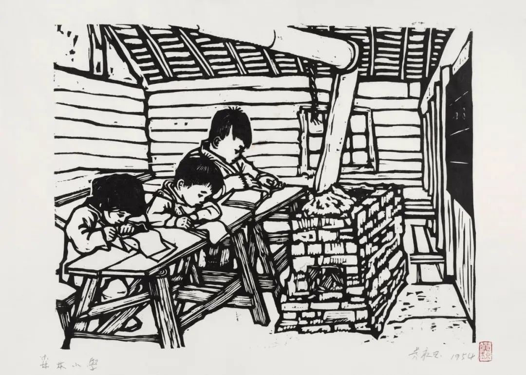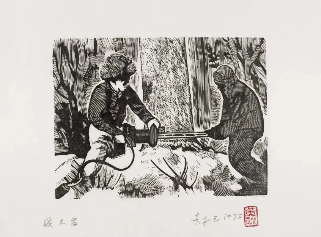 伐木者15×20cm1954年 张梅溪儿童文学《在森林中》插图