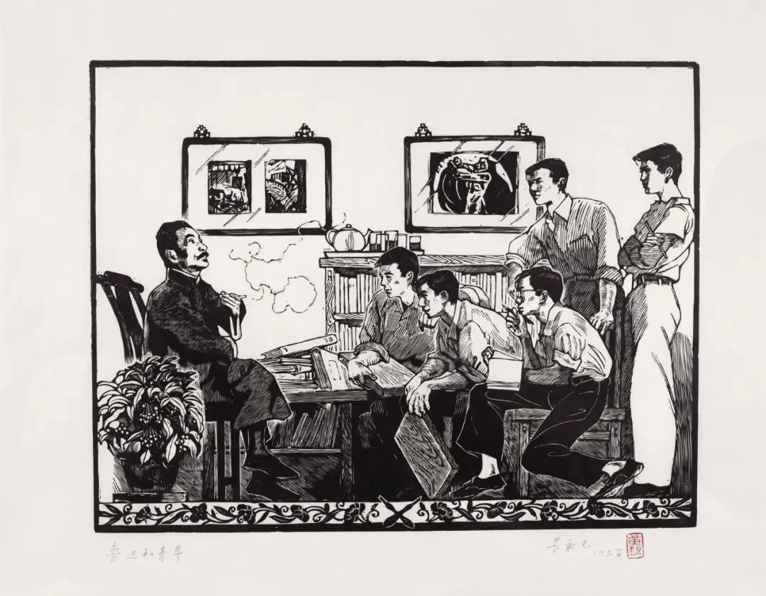 鲁迅先生和青年木刻工作者 35×45cm1954年