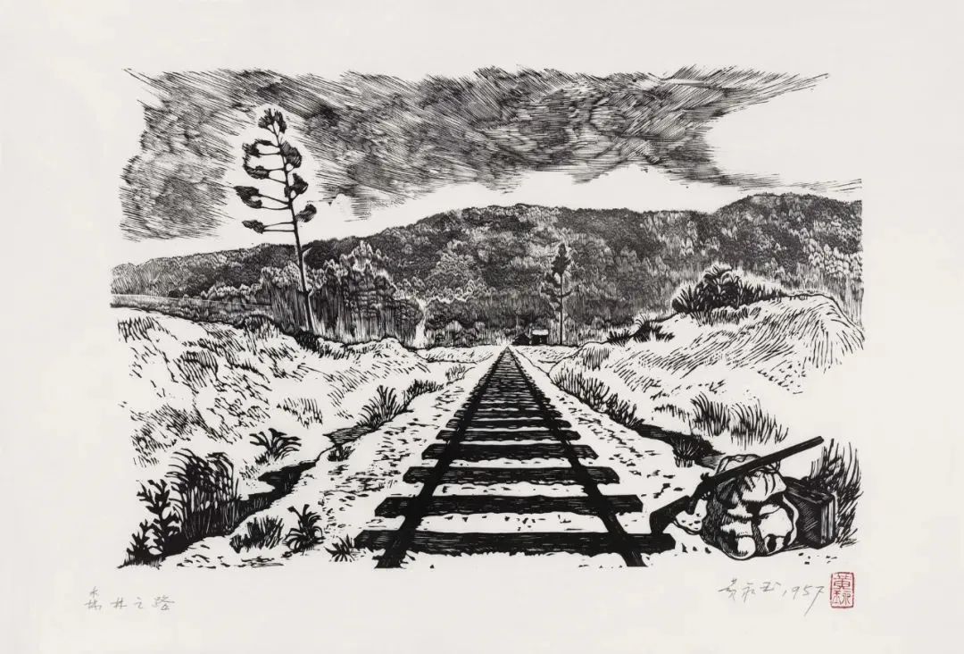 森林之路27×40cm1954年 张梅溪儿童文学《在森林中》插图