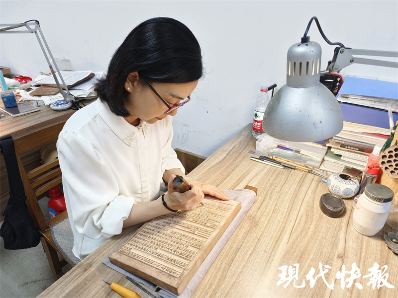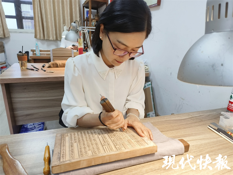 什么样的人适合刻经?“没有统一的标准,有时候可能要看缘分。”邓清之说,第八代传承人是大专院校古籍修复专业毕业的,当时她和师父参加活动,偶然间遇到这两名90后,他们对刻经表现出了非常浓厚的兴趣,毕业后主动到刻经处学习,最终留了下来成为了第八代传承人,她也将所学雕版刻经技艺倾囊相授。如今,两个徒弟,一位是南京市市级代表性传承人,一位是秦淮区区级代表性传承人。