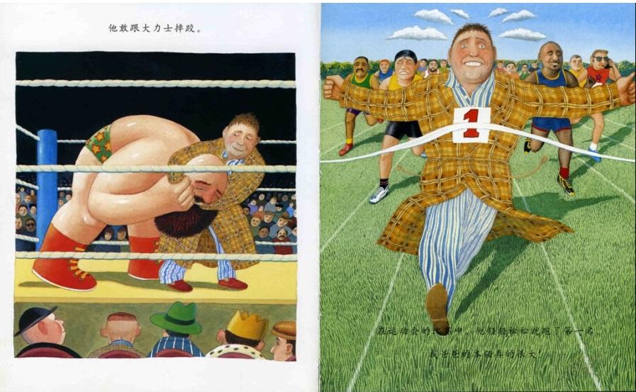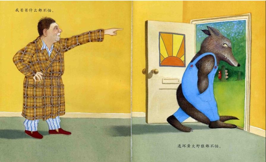 安东尼·布朗是2000年国际安徒生大奖的获得者。《我爸爸》描写了一位“无所不能”的爸爸——整天穿着黄格子睡袍的爸爸既强壮又温柔,他什么都不怕,连坏蛋大野狼都不怕;他可以从月亮上跳过去,还会走高空绳索不会掉下去;他敢跟大力士摔跤;在赛跑中,他轻轻松松就能跑第一名。