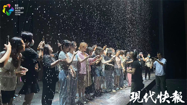 现代快报讯(记者 裴诗语)舞台上,时而雪花纷纷扬扬,时而火焰熊熊燃烧……6月16日,舞台剧《觉醒年代》在开演前举办了一场舞台导览活动。50名观众走上舞台,沉浸式体验了剧中演出场景。