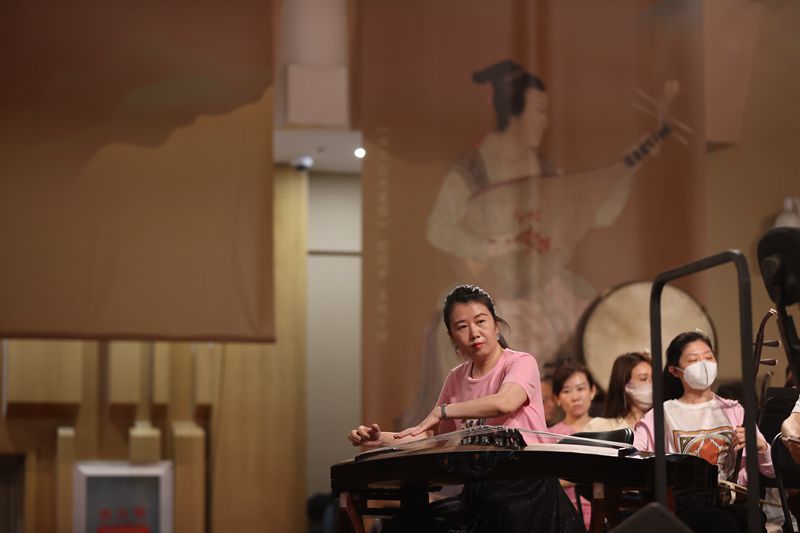 6月19日,古筝演奏家张璐在排练无射·双古筝与乐队《美美与共》。中国日报记者姜东摄