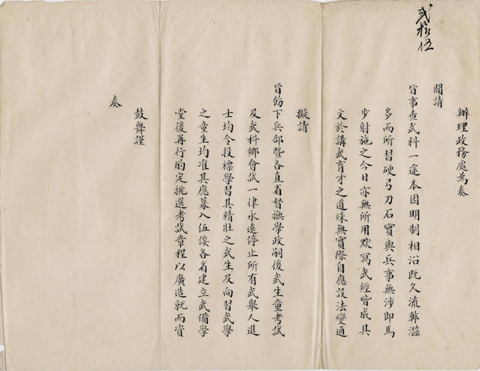 光绪二十七年(1901)办理政务处请停武科之奏摺(原档藏于台北“故宫博物院”图书文献馆)