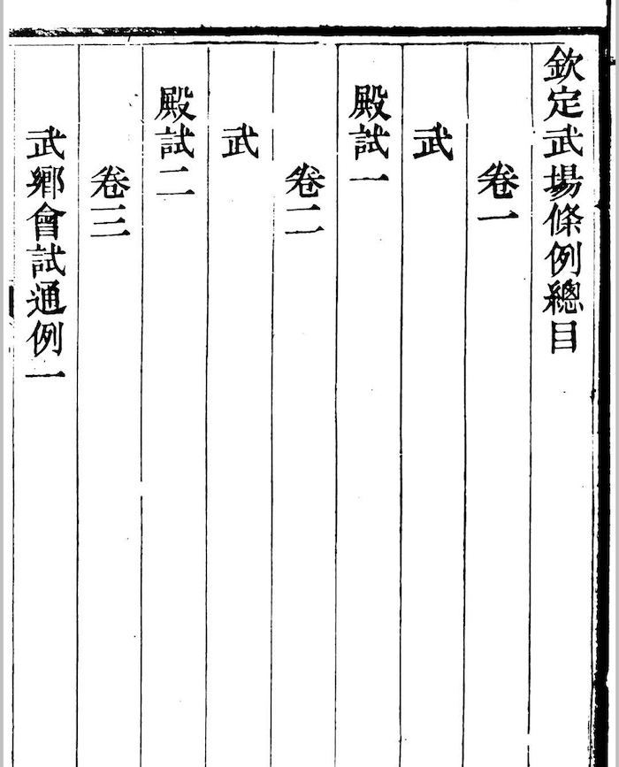 光绪二十一年(1895)刊本《钦定武场条例》内页目录