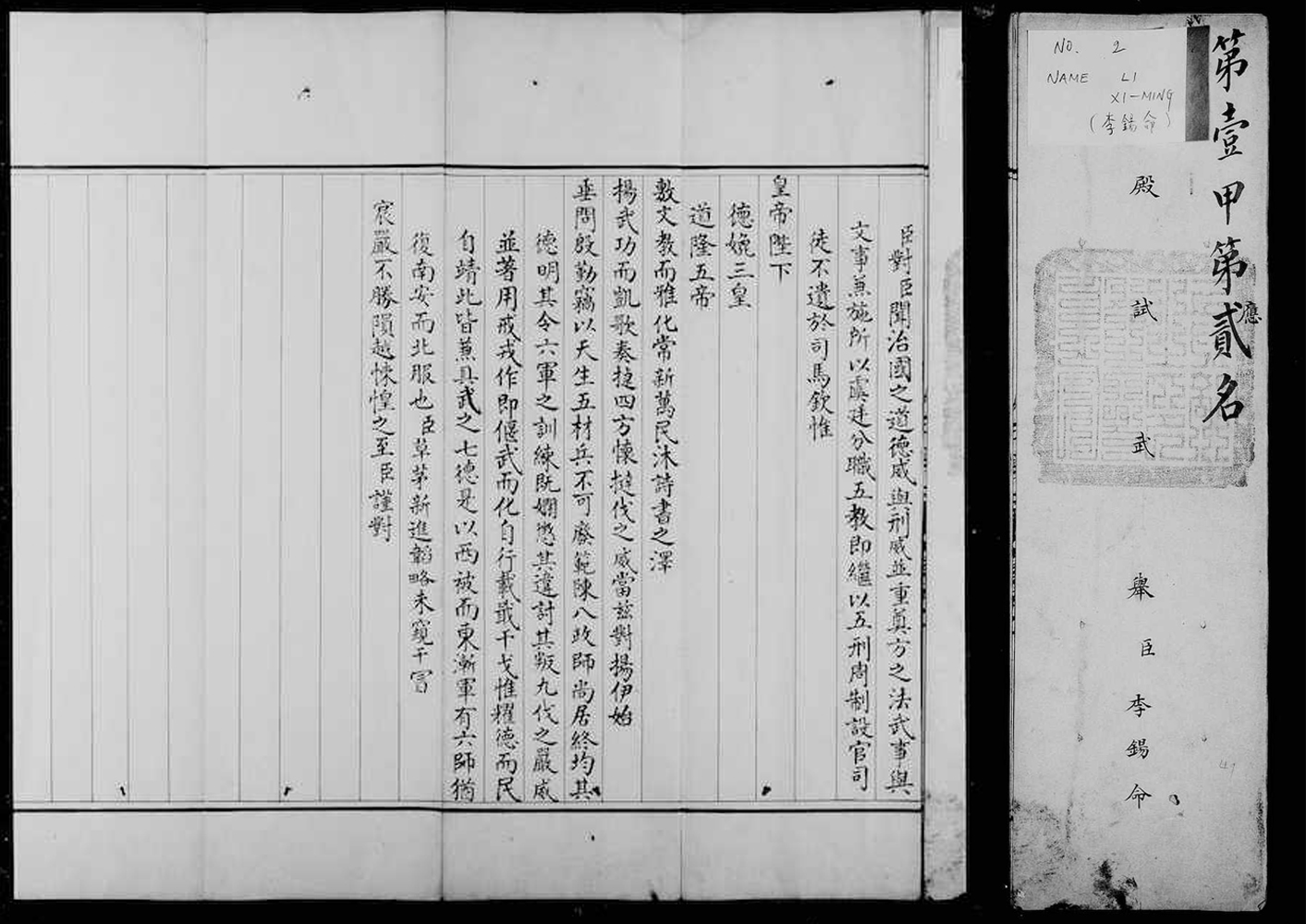 乾隆四十九年(1784)武榜眼李锡命殿试卷(原件藏于加州大学洛杉矶分校东亚图书馆)