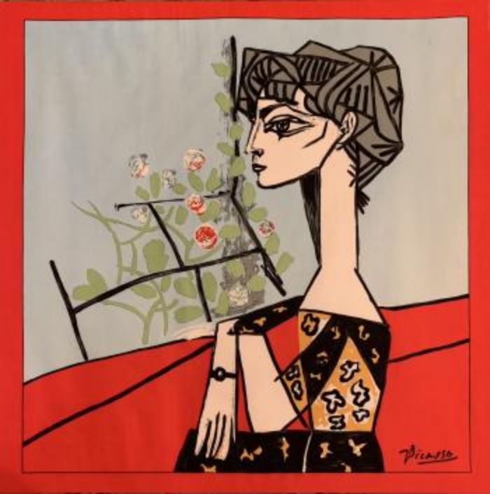 毕加索《杰奎琳与花》71X71cm1954年作套色版画