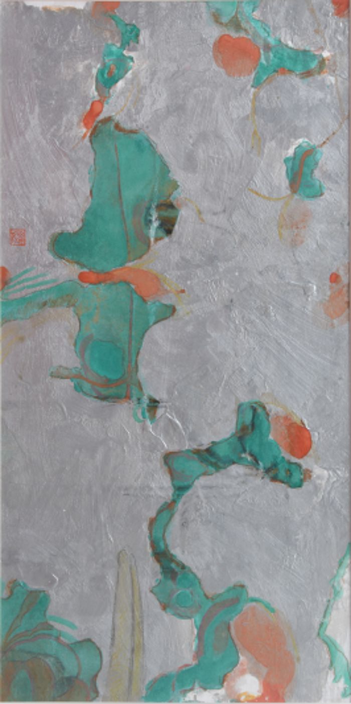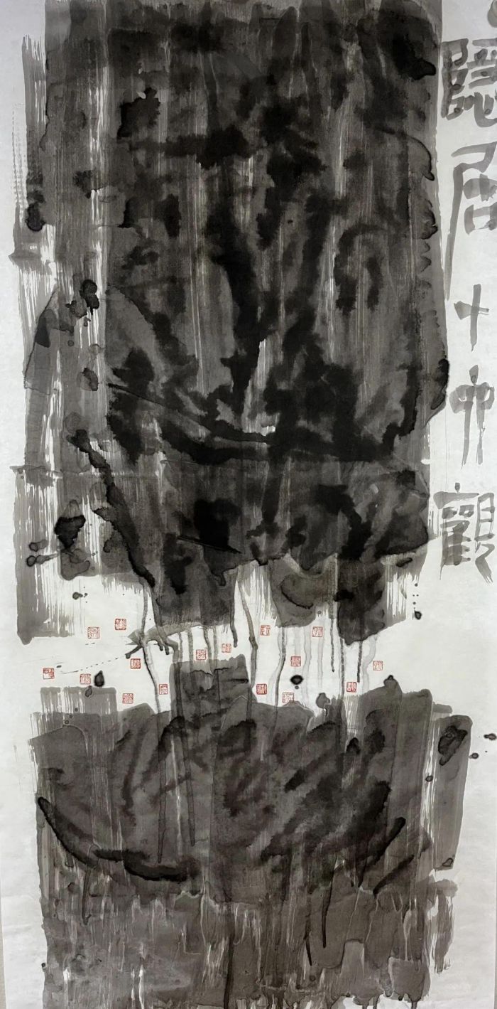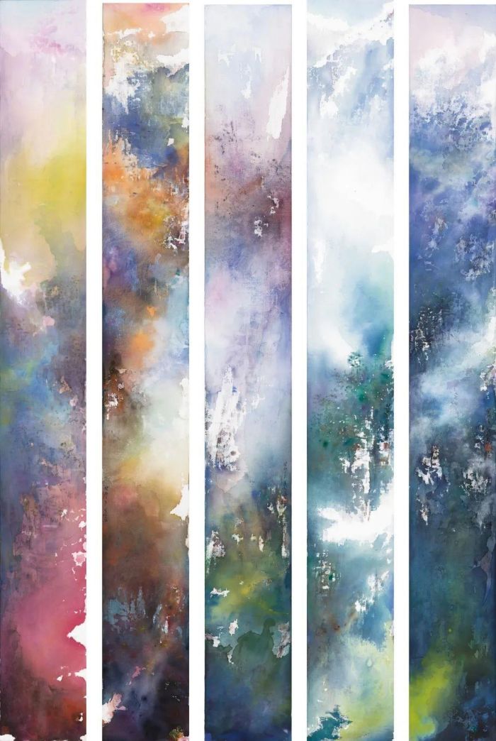 葛杨无题系列作品170×20cm一组五幅水墨丝绸画2023