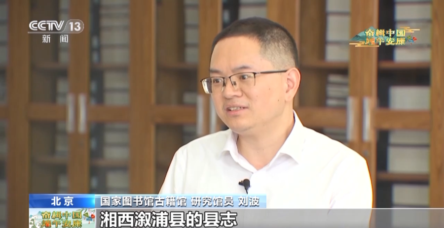 国家图书馆古籍馆研究馆员刘波:光绪(年间)《新宁县志》里面就很明确记载,端午节的各种活动自五日至十五日止。湘西溆浦县的县志,溆浦是屈原在《离骚》里面都提到过的地名。溆浦县的县志里面说:端午酿角黍,也就是包粽子,饮蒲酒就是饮菖蒲酒,簪艾叶就是把艾叶插在头上,为竞渡之戏就是赛龙舟。初五为小端午,望日为大端午。