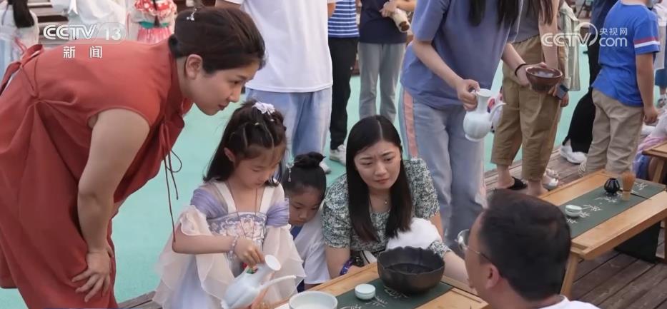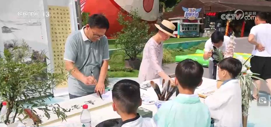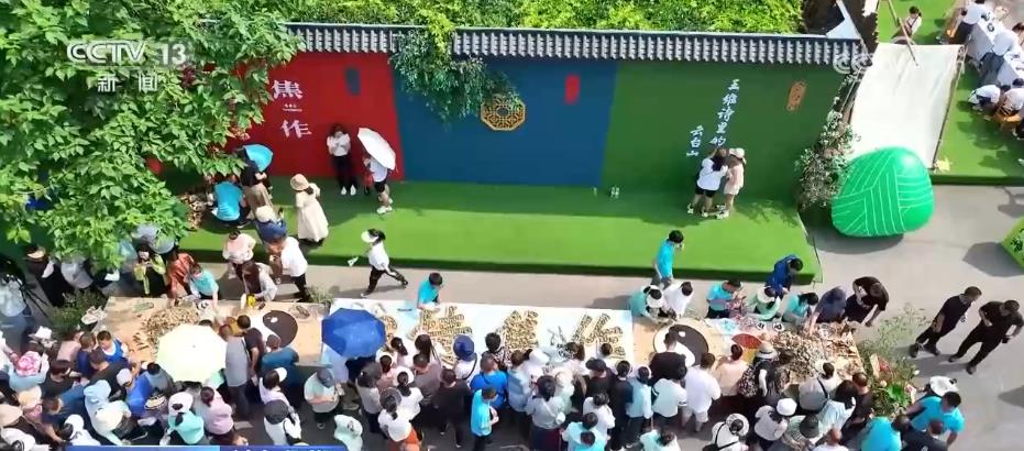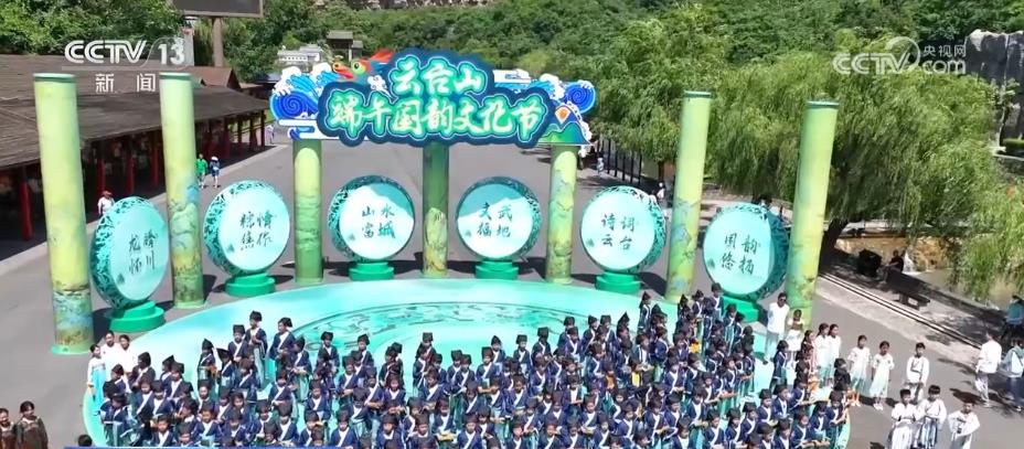 在河南焦作云台山,千名小学生合声诵读屈原诗词《离骚》,纯真童声回荡在青山绿水间。当地群众还准备好了长桌宴,邀请各地游客一同包粽子,品尝特色小吃。水上浆板、书法的体验活动,更是让游客深度体验非遗魅力,品味传统文化内涵。