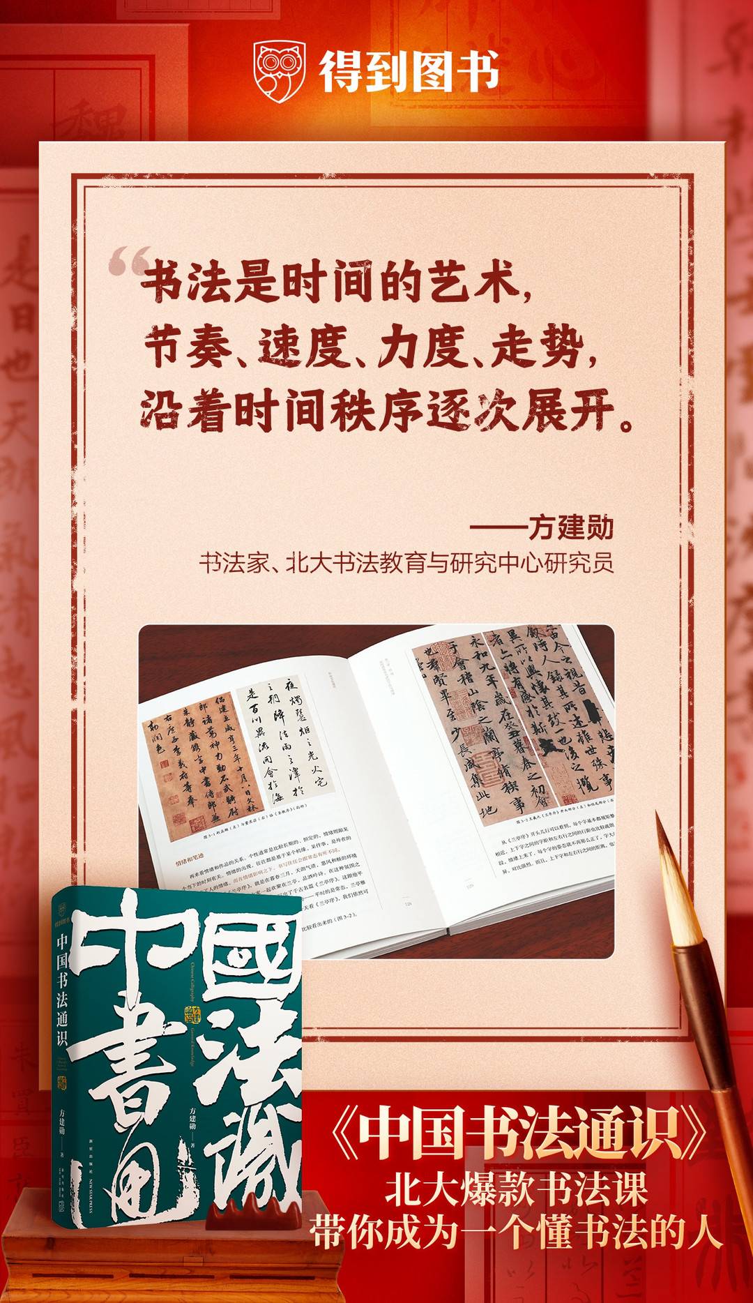 要真正能欣赏到书法的精髓,是一门需要学习、做好审美准备的学问。北京大学书法教育与研究中心研究员方建勋,在北大开设的书法公选课《书法审美与实践》一座难求,深受学生喜爱。他还在“得到”App开设“中国书法通识课”,效果也不俗。2023年6月,方建勋上的“中国书法通识课”的内容还被转化为同名书籍,由新星出版社正式出版。在《中国书法通识》中,方建勋以独创的“六度书法理论”,带读者依次进入中国书法的六重世界——书体的世界、笔墨的世界、性情的世界、书写的世界、观念的世界和再造的世界。