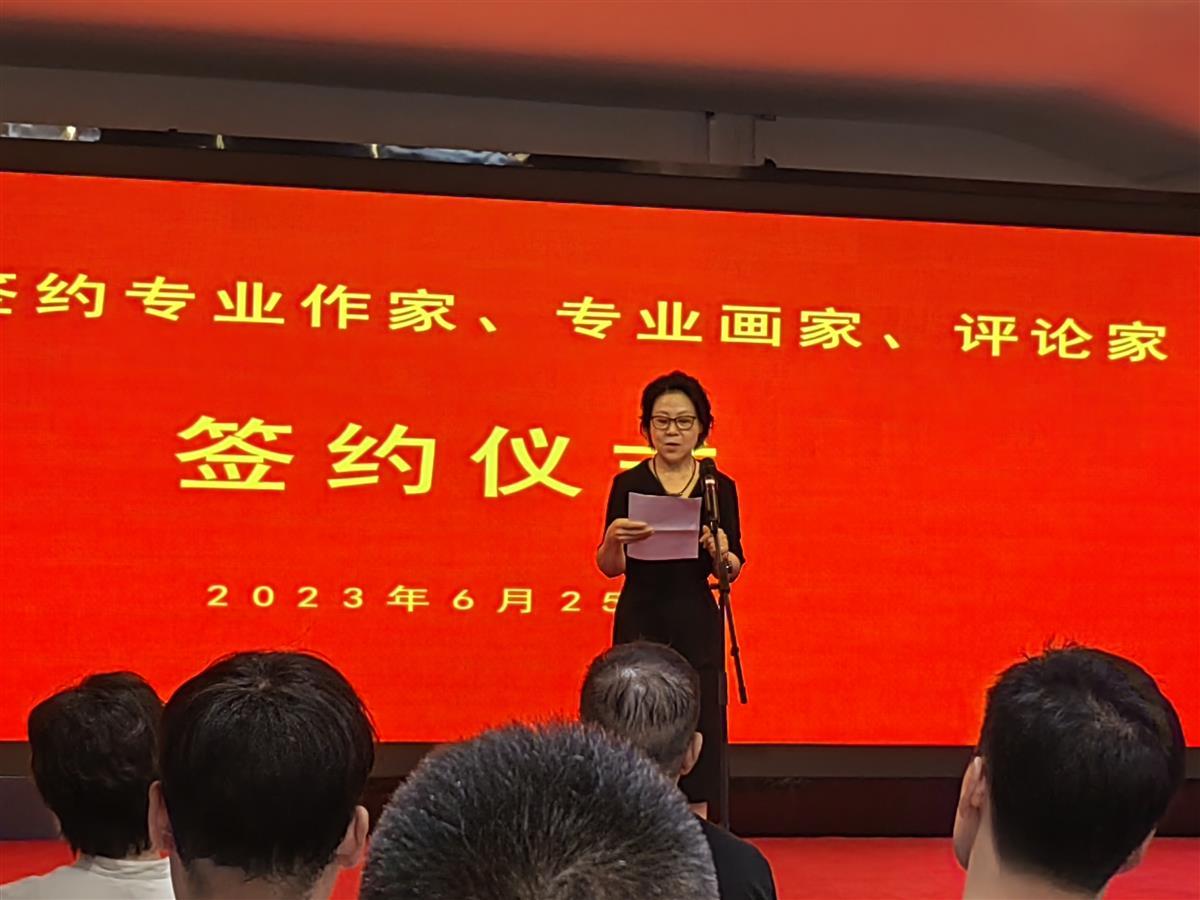 著名作家、武汉市文联主席池莉来到现场,与文艺界的后辈们交流并在签约仪式上讲话。武汉市文联党组成员、副主席董芳主持了签约仪式和媒体见面会。