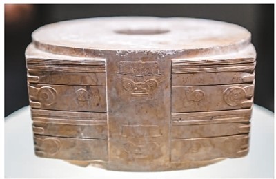 浙江省杭州市余杭区反山遗址出土的玉琮。王初摄(人民图片)