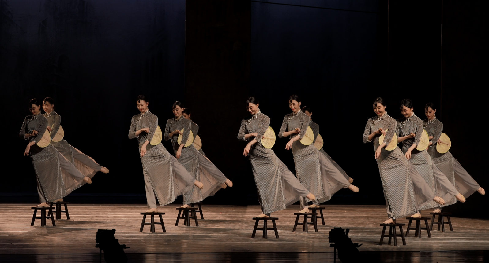 《朱鹮》《永不消逝的电波》大获成功后,各地歌舞团相继推出具有各自地方特色的舞剧作品,比如由广州歌舞剧院创作的《醒·狮》,融入了国家级“非遗”项目广东醒狮,成为新时代传承岭南文化、连接粤港澳大湾区的新名片;由东方歌舞团创作的舞蹈诗剧《只此青绿》,以故宫的《千里江山图》为灵感,铺陈开一幅绝美的中国青绿水墨画卷;由郑州歌舞剧院创排的舞蹈《唐宫夜宴》,展现出黄河文化滋养下大气磅礴的河南精神文化风貌……而在上海,红色文化、海派文化、江南文化构成了这座城市独特的文化魅力,《永不消逝的电波》也展现了许多老上海风情,比如对石库门、弄堂、旗袍店的复刻,还有栀子花、竹伞、蒲扇等经典海派元素,剧中女子群体旗袍舞《渔光曲》展现出传统正宗的海派风情。