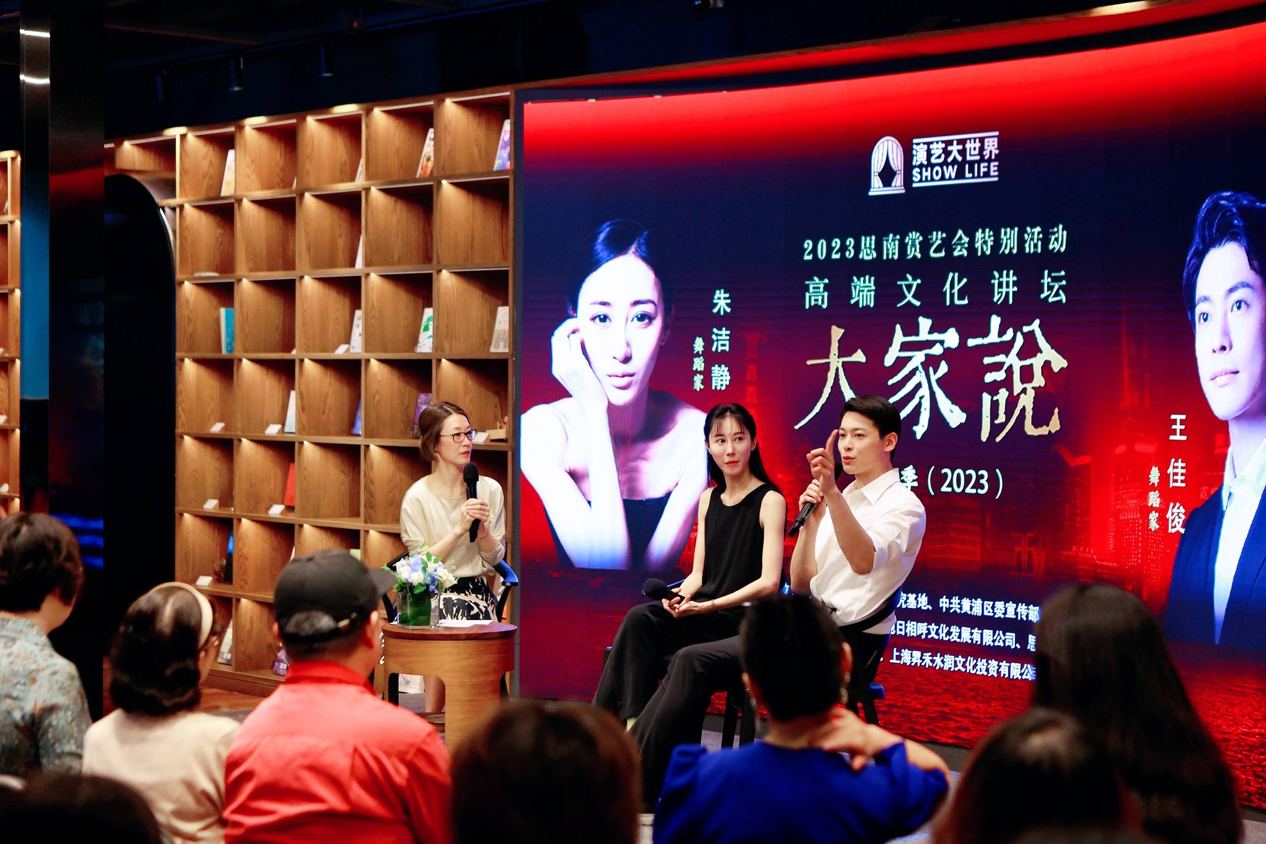6月26日,文化讲坛“大家说”第二季迎来第五期的两位嘉宾——上海歌舞团的“荣典”首席,青年舞蹈家朱洁静、王佳俊。“我们常年在剧场演出,离观众席很远,看不清台下观众的脸,像是隔着一堵墙,但是在这里和大家面对面,这堵墙完全不存在了。”活动伊始,朱洁静用亲切的比喻一下子拉近了和观众的距离。
