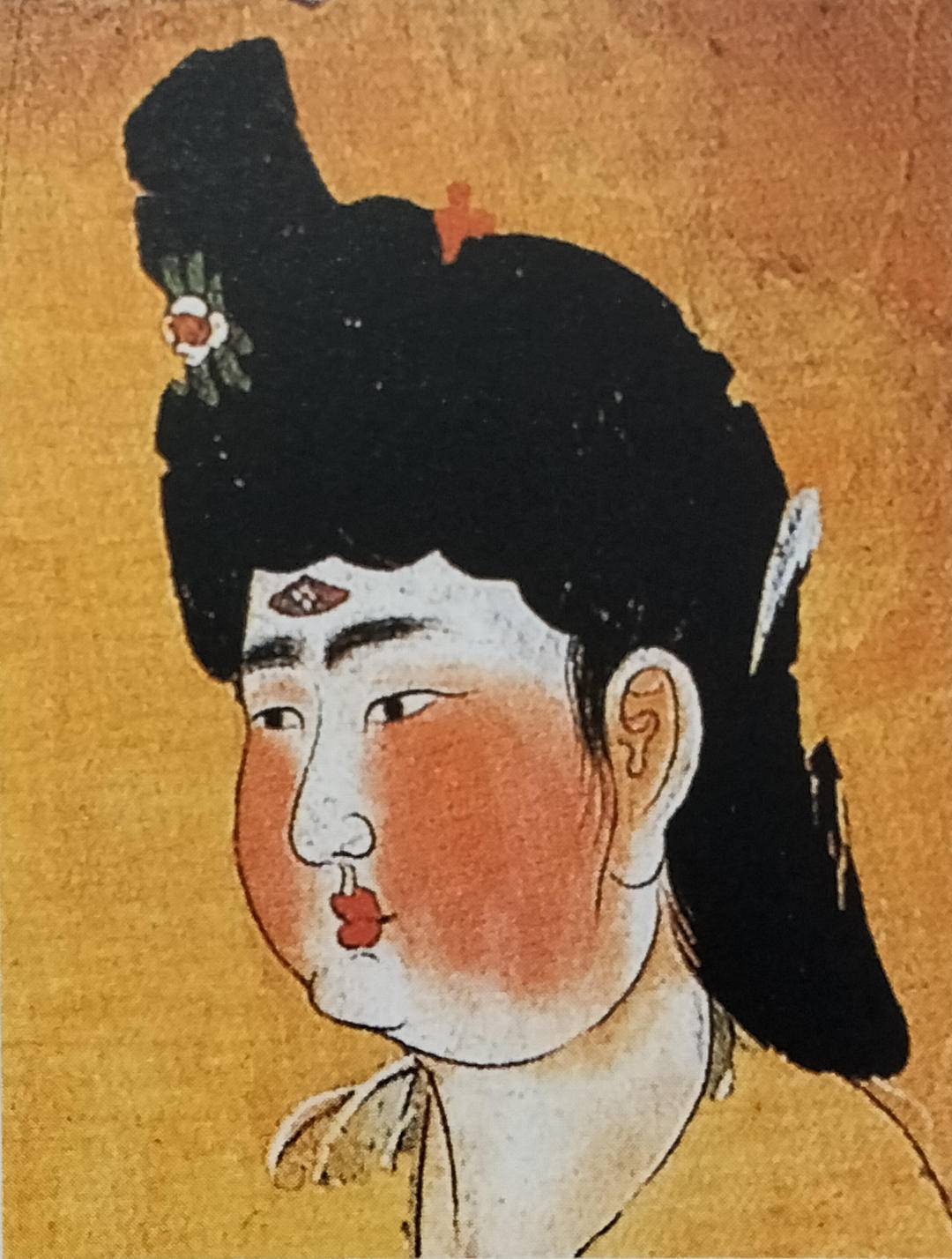 唐代女子额饰花钿,两颊涂抹胭脂的桃花妆