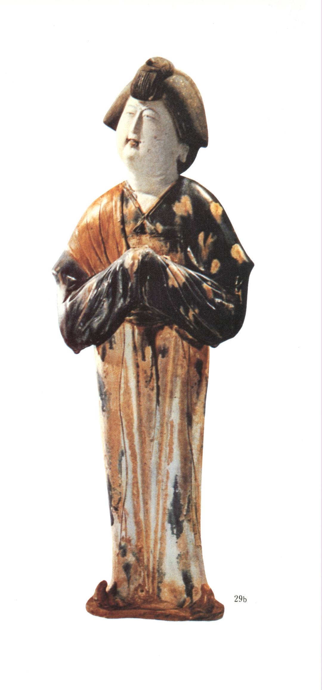 像《微雨燕双飞》中就出现了唐代多种发型,如抛家髻、丫髻等。唐代初年非常流行半翻髻,其形状如同翻卷的荷叶,梳发时自下而上,掠过头顶,然后朝一侧翻转,其发髻高耸向一侧倾斜。中晚唐流行抛家髻,其造型紧贴面颊,两鬓抱面,一髻抛出。《新唐书·五行志一》记载:“唐末,京都妇人梳发以两鬓抱面,状如椎髻,时谓之‘抛家髻’。”《簪花仕女图》中仕女梳峨髻,元稹《李娃行》有云:“髻鬟峨峨高一尺,门前立地看春风”,李贺《河南府试十二月乐辞》曰:“金翘峨髻愁暮云,沓飒起舞真珠裙。”