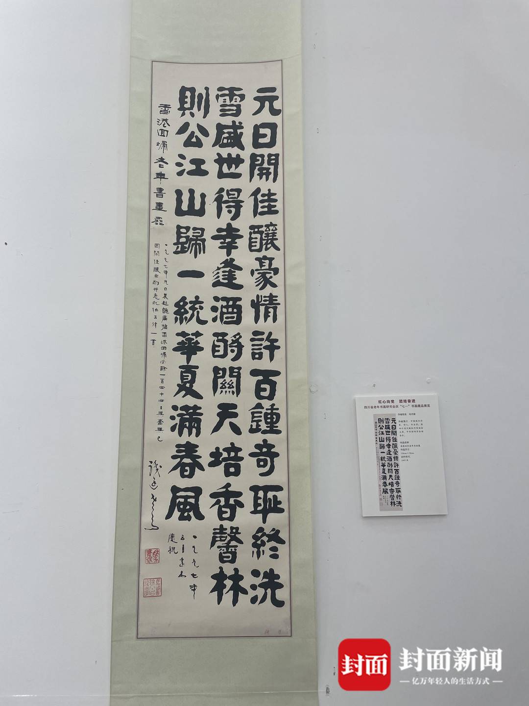 例如著名作家、诗人、书法家马识途先生创作于1997年,为香港回归而写的一幅珍贵书法作品,就在这次展览中被展出。正值7月1日香港回归祖国26周年纪念,马老的这幅作品得到了现场众多观展嘉宾的称赞。