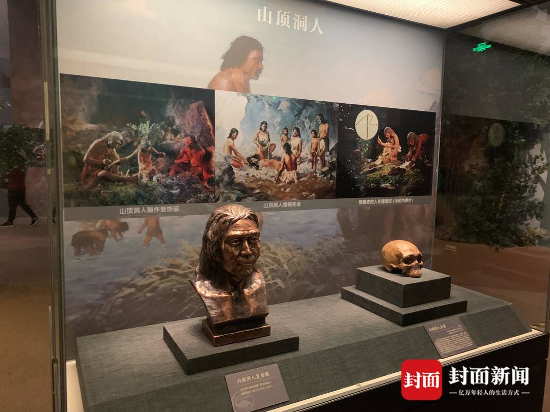 山顶洞人复原图。封面新闻见习记者何金蓝摄影