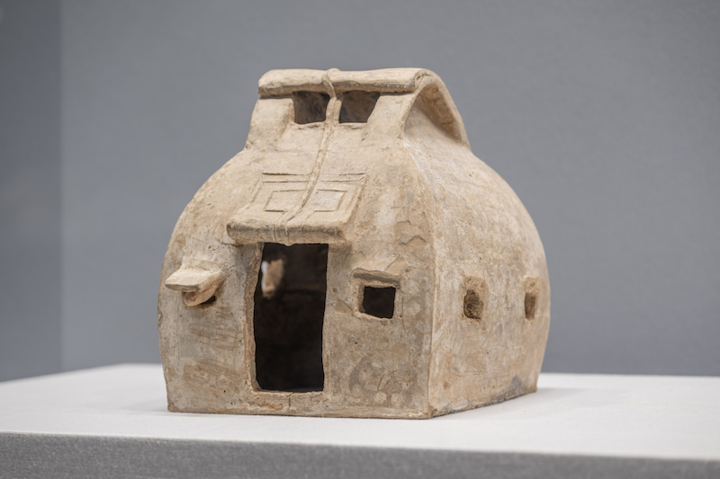 “说到石窟,首先要讲述的是窟型,而云冈石窟的最初窟型是穹窿顶,源自毡帐。展柜中的陶毡帐就是这一形制的总结。毡帐因其保暖性能好,便于移动,是游牧民族居住文化的标志性符号。定都平城之后,毡帐仍被广泛使用,这是拓跋鲜卑在汉化过程中保留游牧传统的体现。而在建造石窟中,拓跋鲜卑也将佛造像搬入了类似毡帐的穹窿顶中。”陈小玲说道。