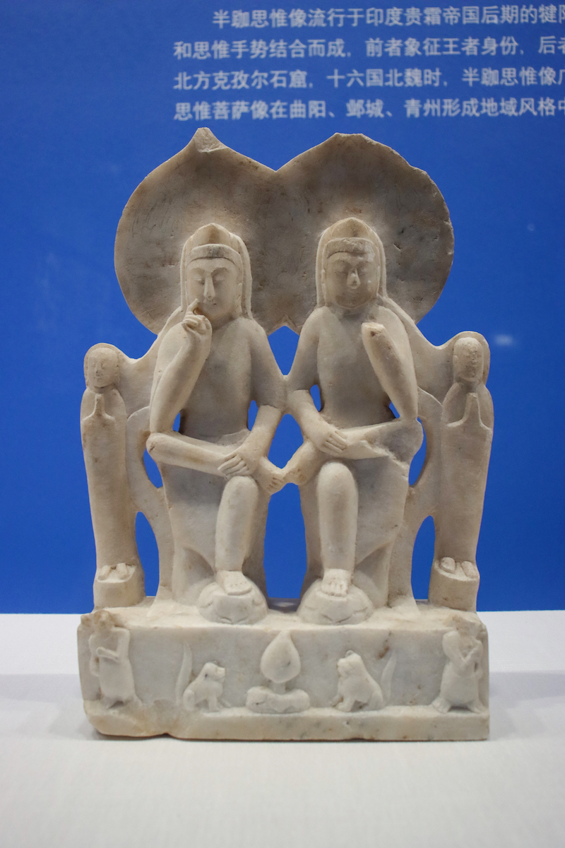 彩绘双思惟菩萨二弟子像,北齐,1969年河北蠡县出土,定州市博物馆藏