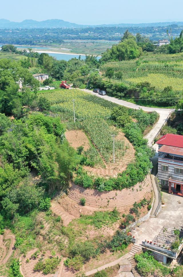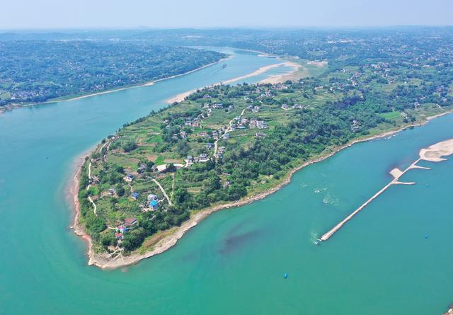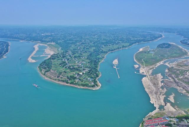 这是6月27日拍摄的神臂城全貌(无人机照片)。远处大桥为5月27日通车的神臂城长江大桥。新华社记者 刘坤 摄