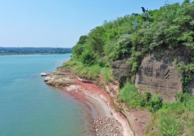 这是6月27日拍摄的神臂城周边岩壁上的题刻(无人机照片)。“公实生我”摩崖题刻,夏天涨水的时候,字被洪水淹没,退水的时候,字又露出来,至今保存比较完好。新华社记者 刘坤 摄