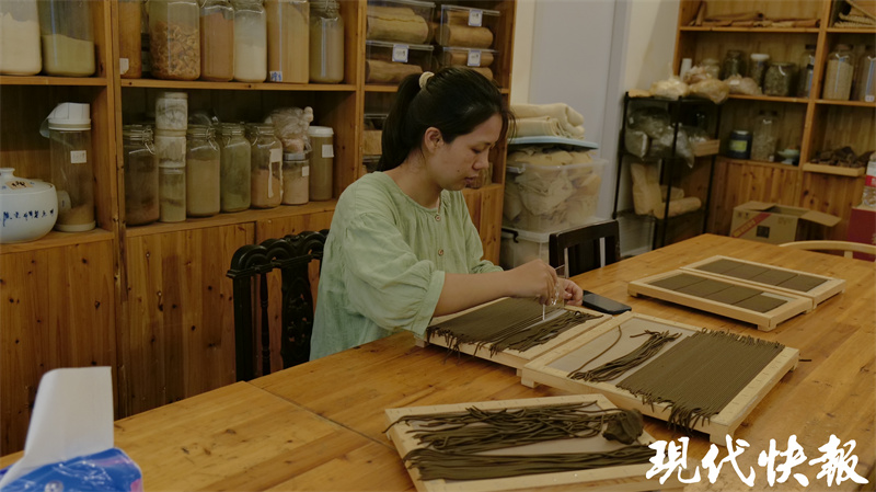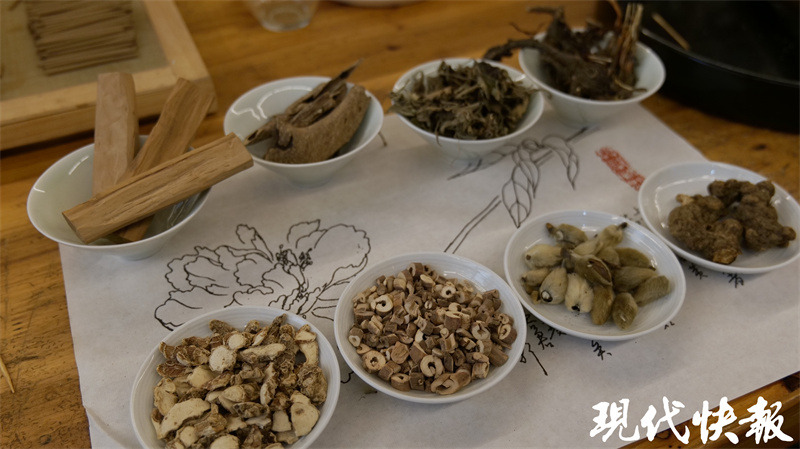 7月3日,现代快报记者走进王其标的工作室,推开门一阵阵淡雅的药香扑鼻而来,沁人心脾。藿香、苍术、沉香……一瓶瓶已经研磨成粉的香料摆满了一整面墙。“目前经常用的香料已经达到四五十种,这些都是我们寻访各个香料原产地得来的。”王其标告诉记者,扬州并不是香料的产地,为此他们走遍全国寻找各种香料,每一种香料,只有在最好的产地,才能孕育出最佳的香气。