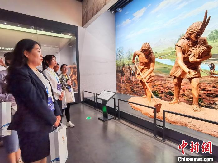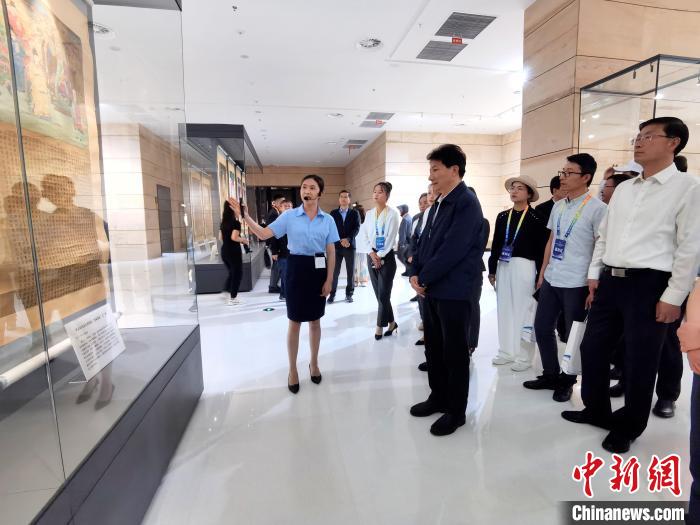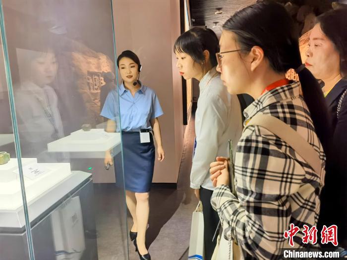 图为河湟文化博物馆讲解员向首批参观者讲述文物渊源。 祁增蓓摄