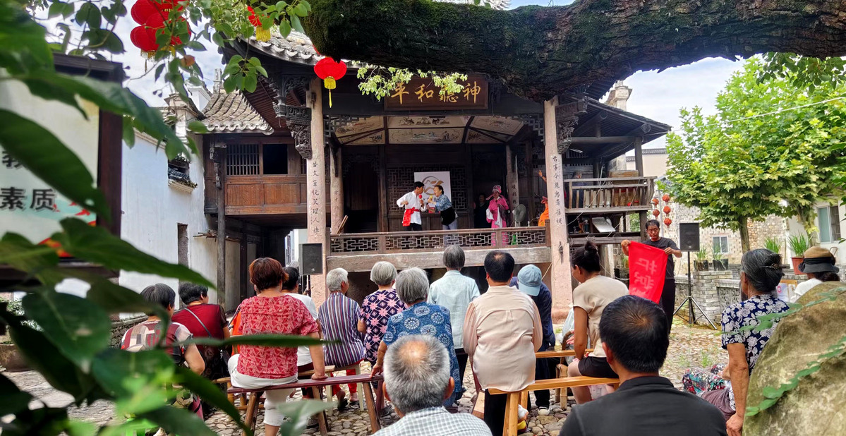 皤滩乡山下村,村民自发组织的越剧曲目在古戏台展演摄影:应小鹰