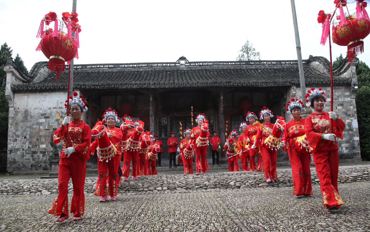 传统特色民俗表演“跳跳马”在皤滩古街热闹开场摄影:应小鹰