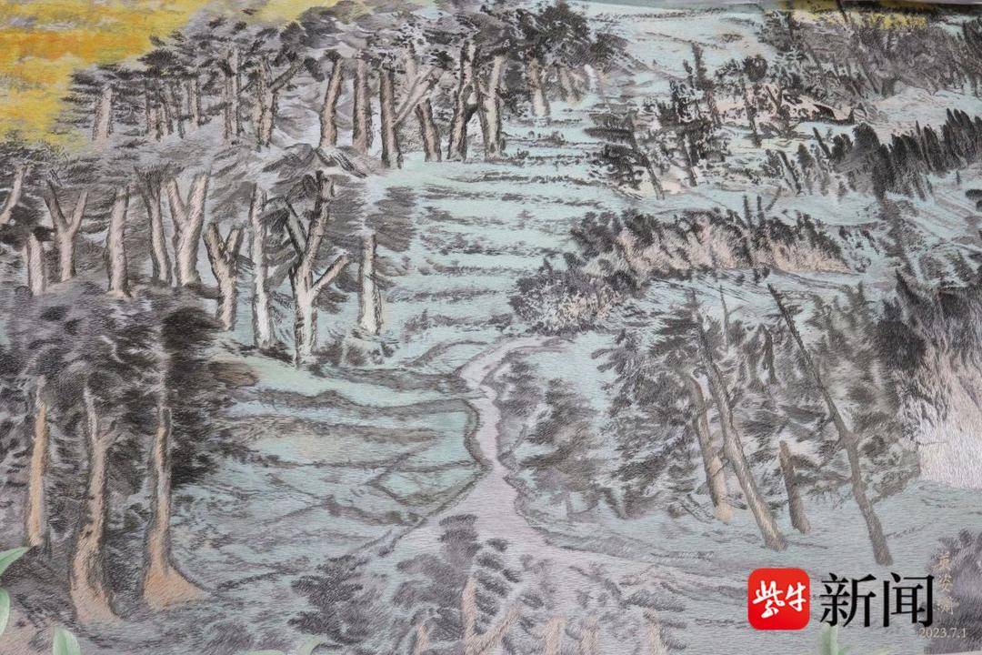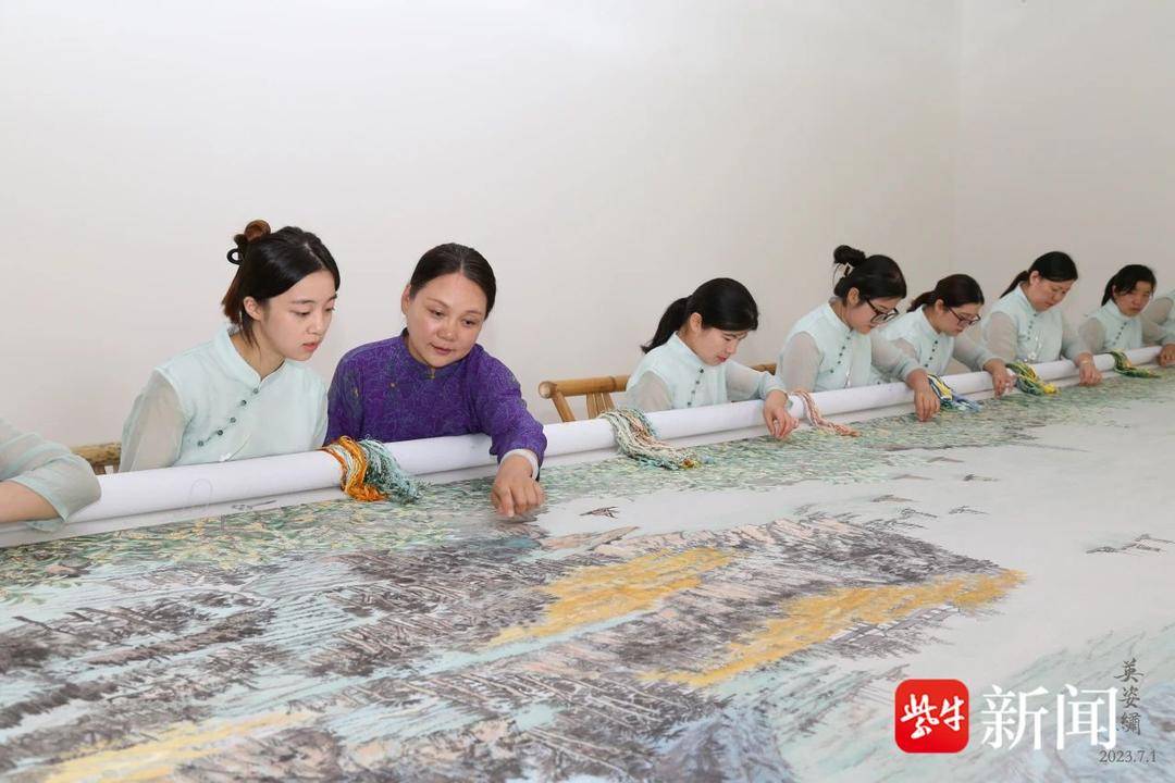记者了解到,作品选用一整幅完整未拼接的绣布,绣布下面衬垫的宣纸也是特别定制三丈三长的著名传统手工整红星宣纸。桂花的绣面达到九米长,绘画绣制时的细工活,在时间紧任务重的情况下,采用一边画一边绣的方式,与时间赛跑。