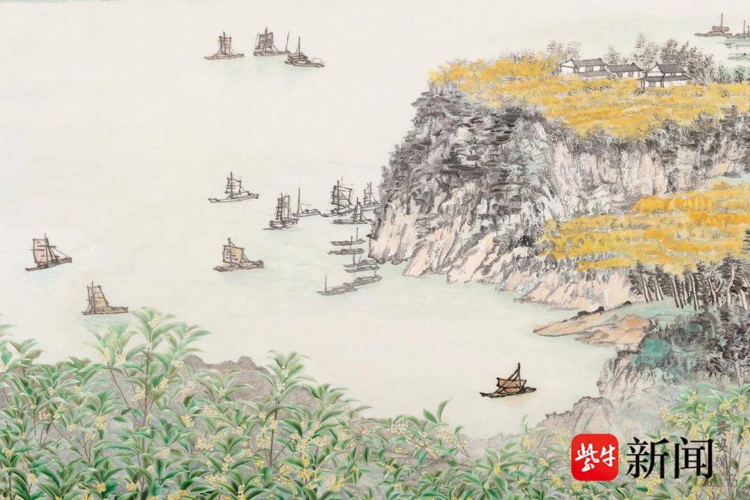 还融合苏州古城虎丘塔、山里民居及现代高楼大厦标志性建筑。长卷既描绘了长江“一条大河波浪宽”的壮观场面,又将苏州的真山真水及历史文化气息展现出来,呈现出一派安居乐业、神融气泰的高质量发展景象。